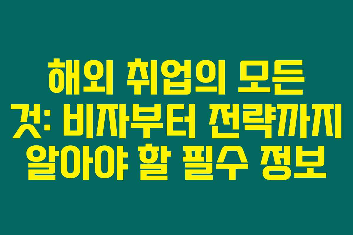 제가 직접 경험해본 결과로는 해외 취업은 단순한 도전이 아니라, 인생을 변화시킬 수 있는 큰 기회입니다. 그러나 비자 문제와 같은 복잡한 현실을 무시해서는 안 되며, 이를 충분히 준비할 필요가 있습니다. 아래를 읽어보시면, 성공적인 해외 취업을 위한 필수 정보들과 전략을 알차게 준비할 수 있을 것입니다.
