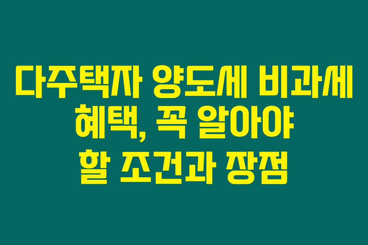 다주택자가 양도세 비과세 혜택을 받기 위해서는 몇 가지 조건을 충족해야 합니다.