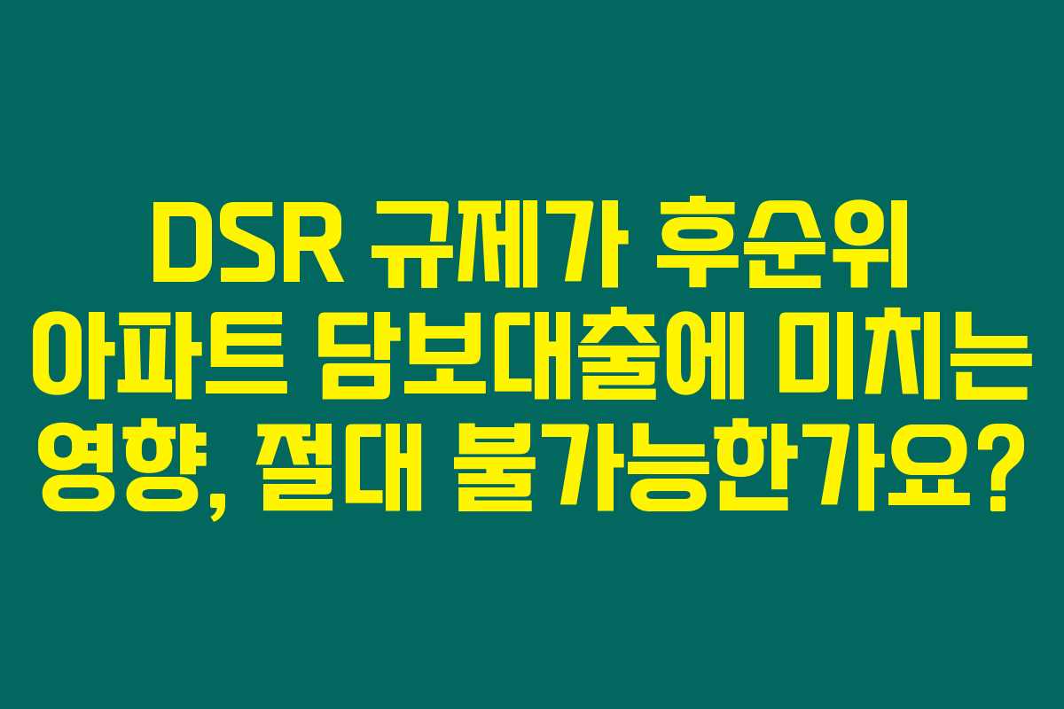 - 1. DSR 40% 넘으면 후순위 아파트 담보대출이 완전히 불가능한가요?