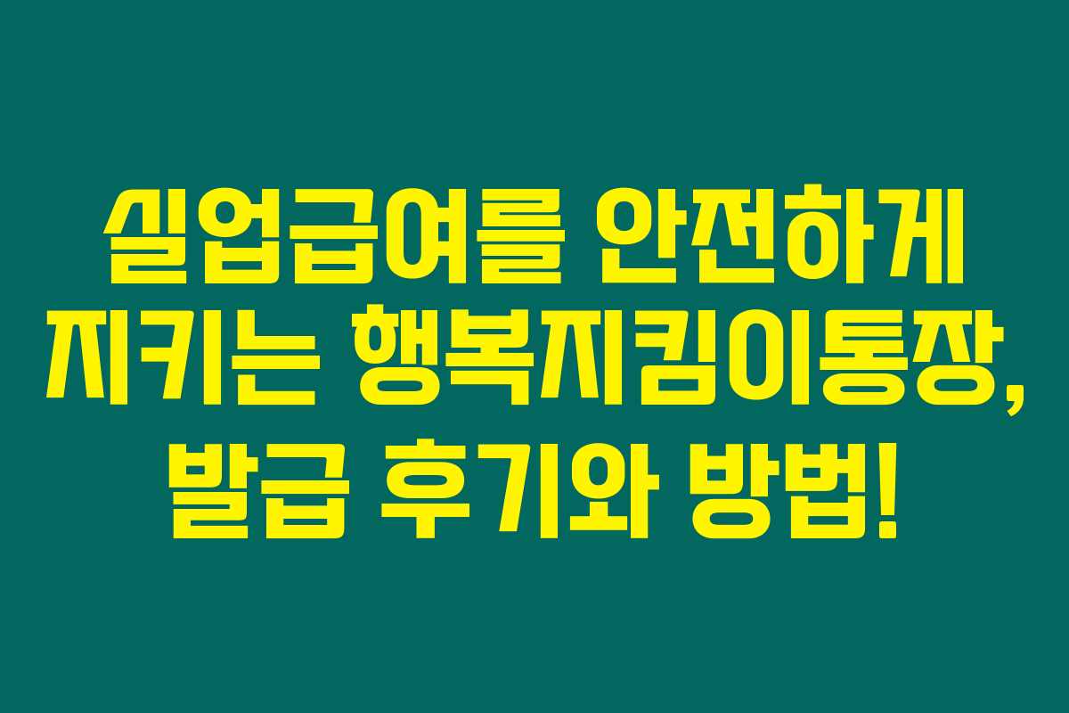 제가 직접 경험해본 결과로는, 실업급여를 안전하게 관리할 수 있는 행복지킴이통장은 많은 분들께 도움이 될 듯합니다. 실업급여 압류방지통장으로 설계된 이 통장은 재정적인 어려움 속에서도 소중한 권리를 지킬 수 있도록 도와주는데요, 아래를 읽어보시면 그 상세한 발급 방법과 후기를 확인하실 수 있을 거예요.
