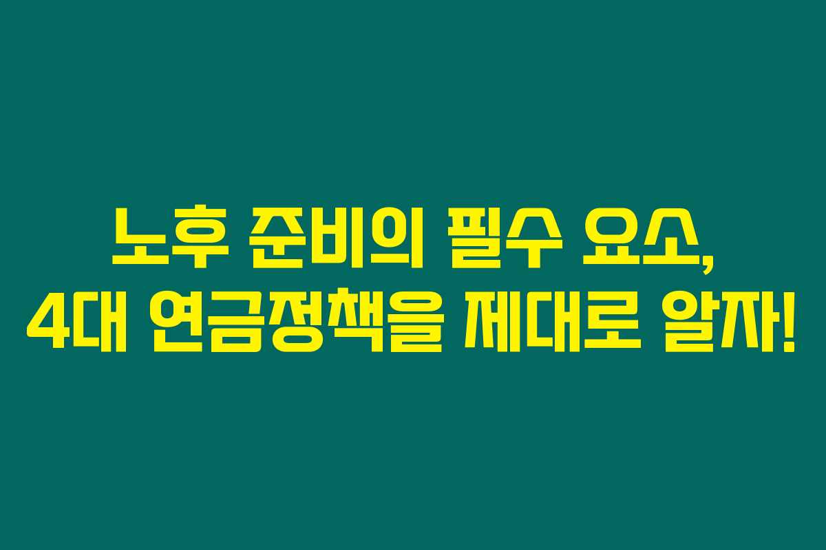노후 준비의 필수 요소, 4대 연금정책을 제대로 알자!