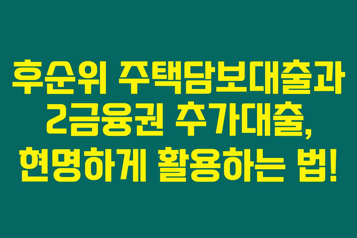 제가 직접 리서치한 바로는 후순위 주택담보대출과 2금융권 주택담보 추가대출은 자금을 더욱 필요로 하는 상황에서 유용하게 활용할 수 있는 대출 상품이에요. 경제적으로 힘든 시기에 생활비나 긴급 비용을 충당하는 데 큰 도움이 될 수 있습니다. 아래를 읽어보시면 이 두 가지 대출의 특징과 활용 방법에 대해 깊이 있는 정보를 얻을 수 있을 거예요.