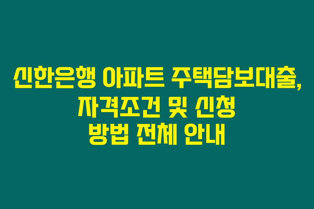 신한은행 아파트 주택담보대출을 신청하기 위해서는 19세 이상의 성인으로, 자신이 소유한 아파트를 담보로 제공할 수 있어야 합니다.