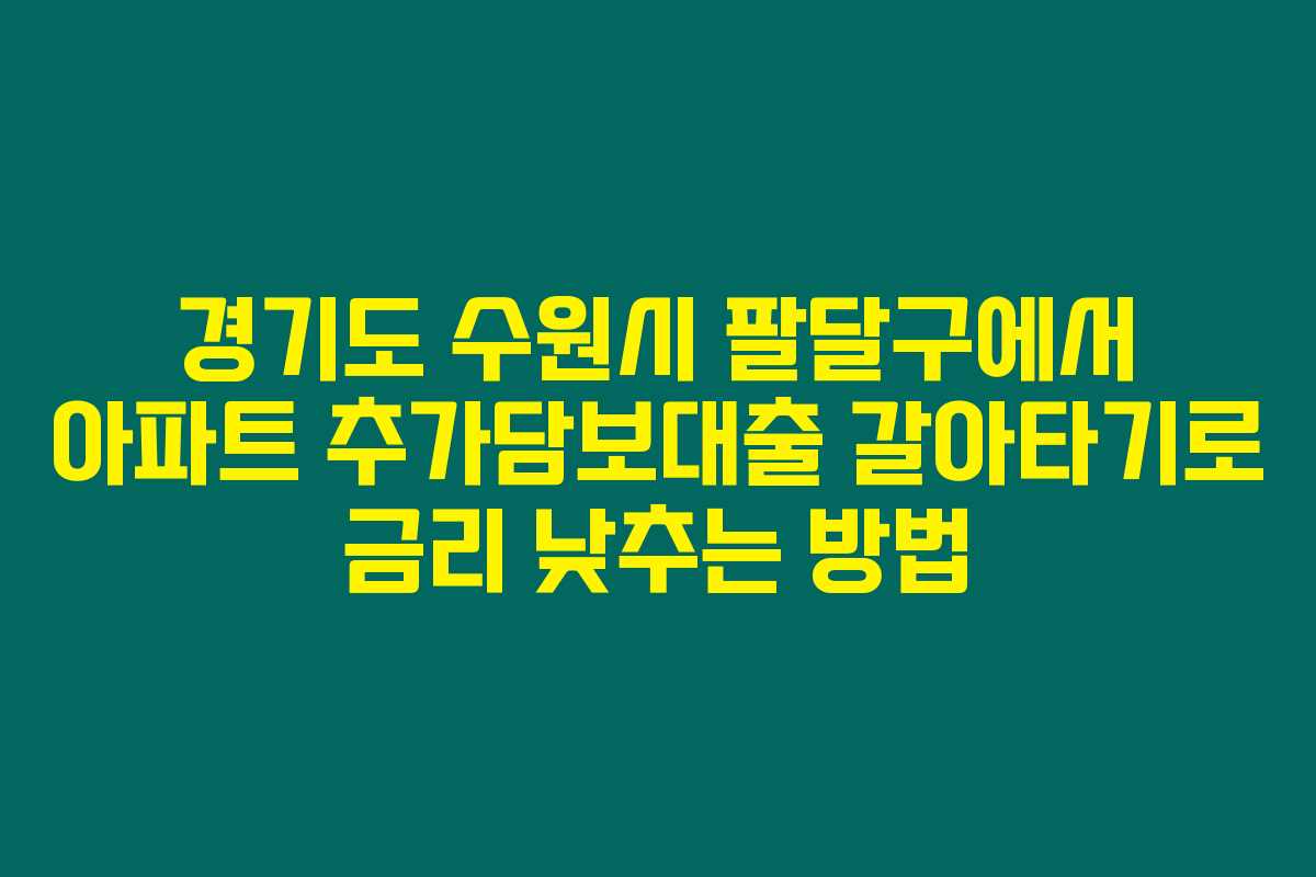 마무리하자면, 경기도 수원시 팔달구에서 아파트 추가담보대출을 통해 금리를 낮추는 것은 충분히 가능하답니다. 각 개인의 상황에 맞춰 최적의 대출 상품을 찾고 적절히 활용하는 것이 중요하겠죠. 앞으로도 이와 같은 유용한 정보들이 필요하다면 언제든지 찾아와 주세요!