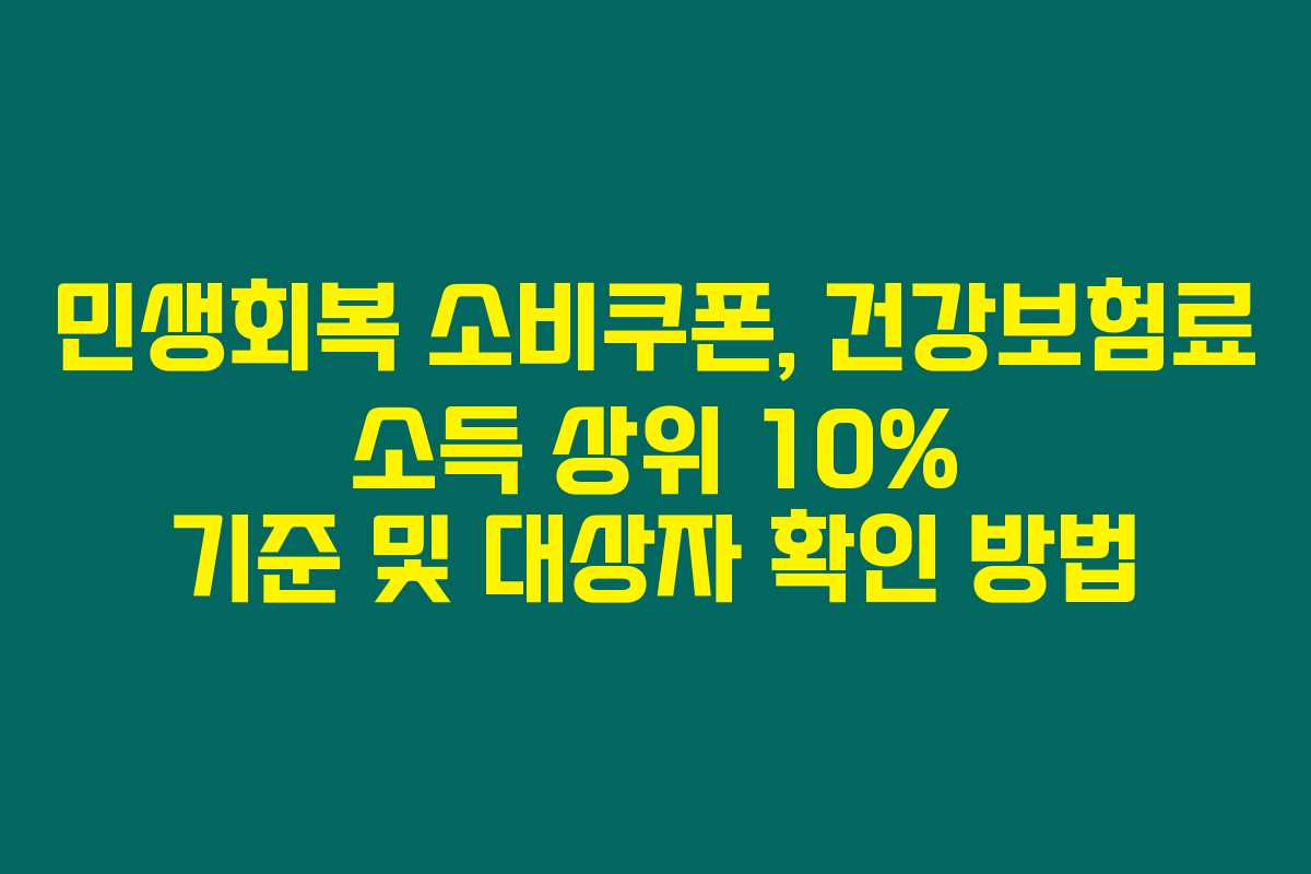 제가 직접 경험해본 결과로는 민생회복 소비쿠폰은 소비 촉진을 위한 국민의 실질적 지원 정책으로, 많은 사람들이 관심을 가지고 있습니다. 이번 쿠폰은 전 국민에게 지급되지만 소득 상위 10%는 제외되는 점에서 누가 받을 수 있을지 궁금증이 생기기 마련이에요. 아래를 읽어보시면 소득 상위 10% 기준과 건강보험료 확인 방법을 한눈에 알 수 있도록 정리해드릴게요.