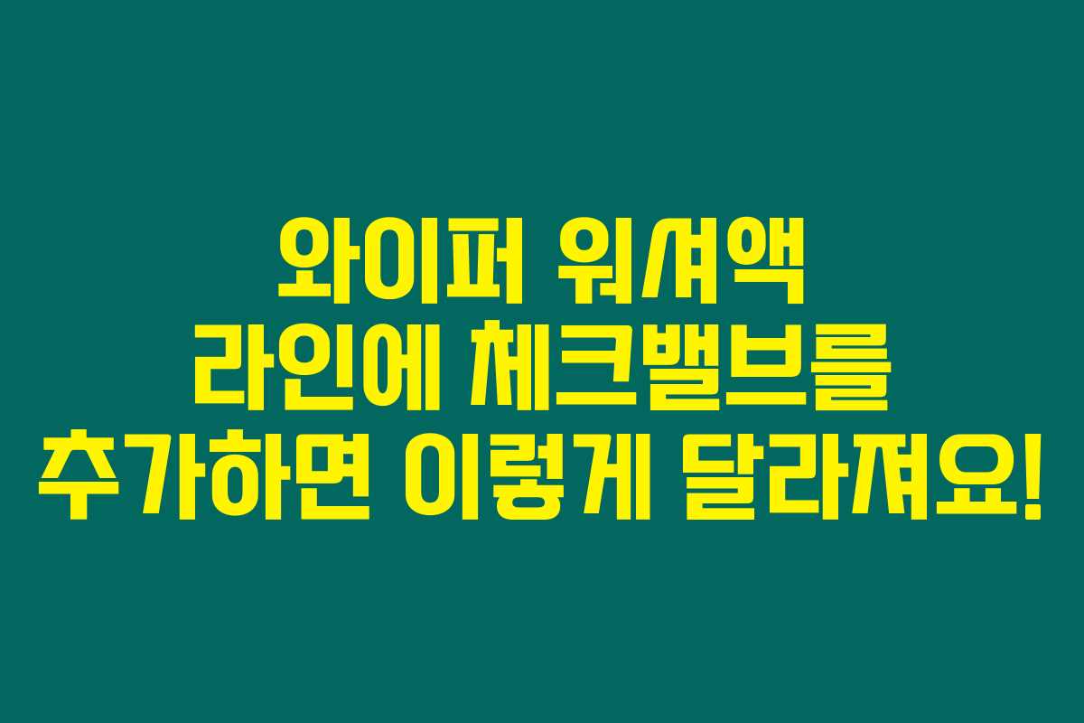 제가 경험해본 바로는, 차량의 와이퍼 워셔액 라인에 체크밸브를 추가하는 것이 얼마나 유용한지에 대한 내용입니다. 자동차를 운전하다 보면 자주 마주치는 문제 중 하나가 바로 워셔액의 지연 문제입니다. 멀티 펑션 스위치를 눌렀을 때, 와이퍼가 먼저 작동하고 워셔액은 그 뒤에 나오는 경우가 매우 불편하더라고요. 아래를 읽어보시면, 체크밸브 설치가 어떻게 이 문제를 해결하는지에 대한 궁금증을 풀어드릴게요!