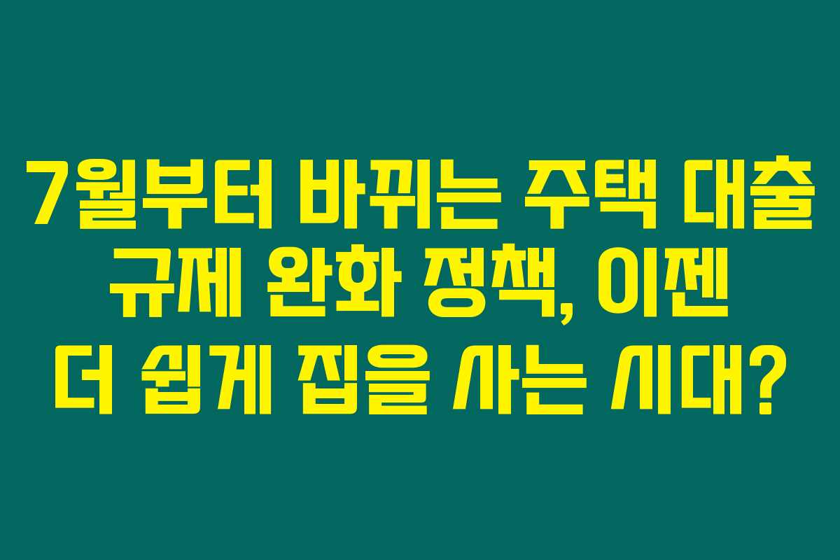 제가 직접 리서치한 바로는, 7월부터 시행된 주택 대출 규제 완화 정책은 많은 신혼부부와 실수요자들에게 희소식이 될 것으로 보입니다. 주택담보대출에 대한 이해가 필요하다면, 아래를 읽어보시면 유용한 정보가 많을 거예요.