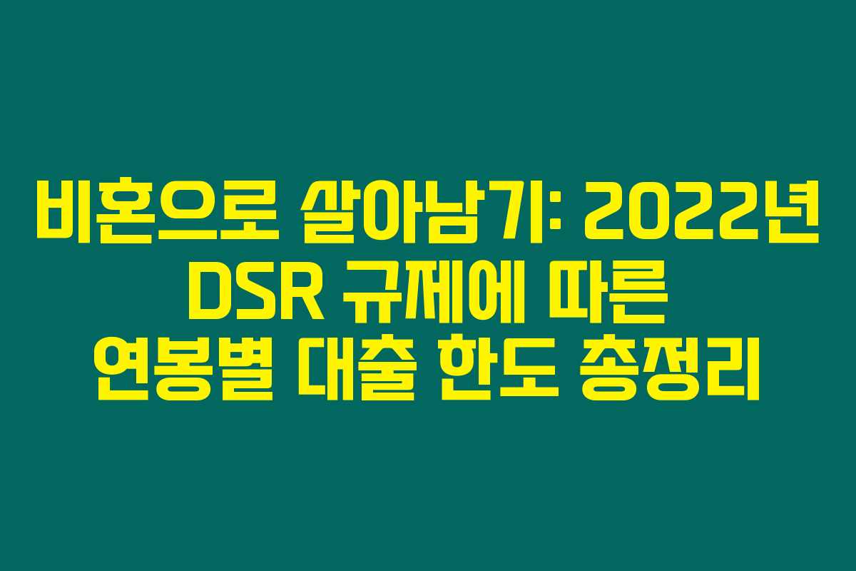 제가 직접 리서치한 바로는, 2022년 7월부터 시행된 DSR(총부채상환비율) 규제로 인해 연봉에 따른 대출 한도가 변화하고 있답니다. 특히 이러한 제도는 비혼자들이 주택 구매를 계획할 때 더욱 철저히 고려해야 할 요소가 되었어요. 아래를 읽어보시면, 연봉별 대출 한도와 DSR 규제가 미치는 영향 등에 대한 유용한 정보를 확인하실 수 있을 거예요.