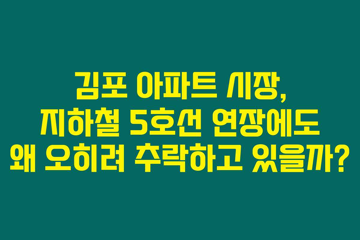 제가 직접 체크해본 바로는, 김포 아파트 시장이 최근 지하철 5호선 연장 계획에도 불구하고 꽤 차갑게 식어버렸습니다. 많은 사람들이 기대한 대로 집값이 오를 것이라는 예측은 오히려 하락세로 돌아섰죠. 아래를 읽어보시면 김포 아파트 시장에 대한 현황, 이유, 전망에 대해 구체적으로 알아보실 수 있습니다.