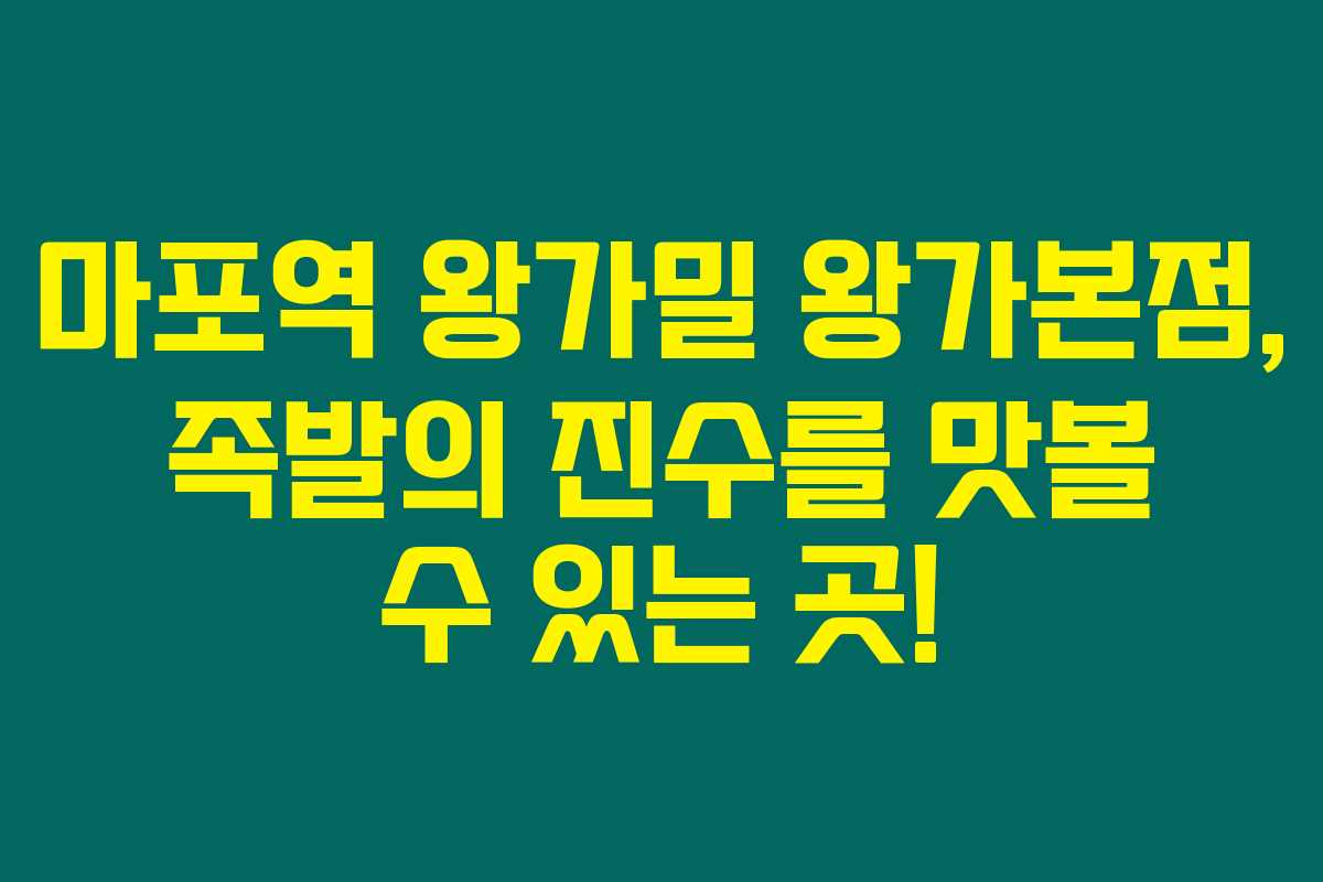 제가 알아본 바로는 마포역 근처에 있는 ‘왕가밀 왕가본점’은 족발을 사랑하는 사람들에게 꿈의 맛집으로 통하는 장소랍니다. 특히 하루에 50개 한정 판매하는 족발 메뉴가 있어, 많은 사람들이 이곳을 방문해 맛있는 족발을 즐기는 모습이 포착되곤 해요. 메뉴 가격, 위치 정보, 그리고 강화도 전등사에서의 템플 스테이까지 다양한 정보를 아래를 읽어보시면 확인할 수 있습니다.