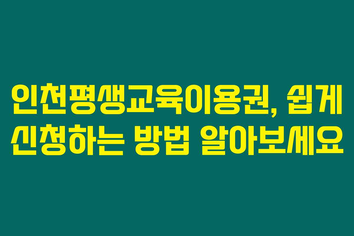 제가 알아본 바로는 인천시에 거주하는 분들이라면 놓쳐서는 안 될 중요한 혜택이 바로 인천평생교육이용권이에요. 이 제도는 평생교육에 대한 접근성을 높여주고, 자기 개발을 위한 강력한 지원책이랍니다. 아래를 읽어보시면 누구나 쉽게 따라 할 수 있는 신청 방법에 대해 상세히 안내드릴게요.