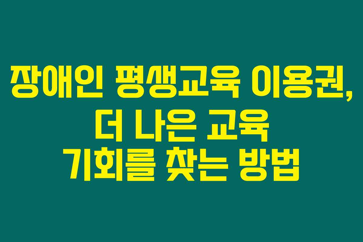 장애인 평생교육 이용권은 장애인들이 평생교육에 참여할 수 있도록 지원하는 중요한 프로그램입니다. 제가 체크해본 바로는,