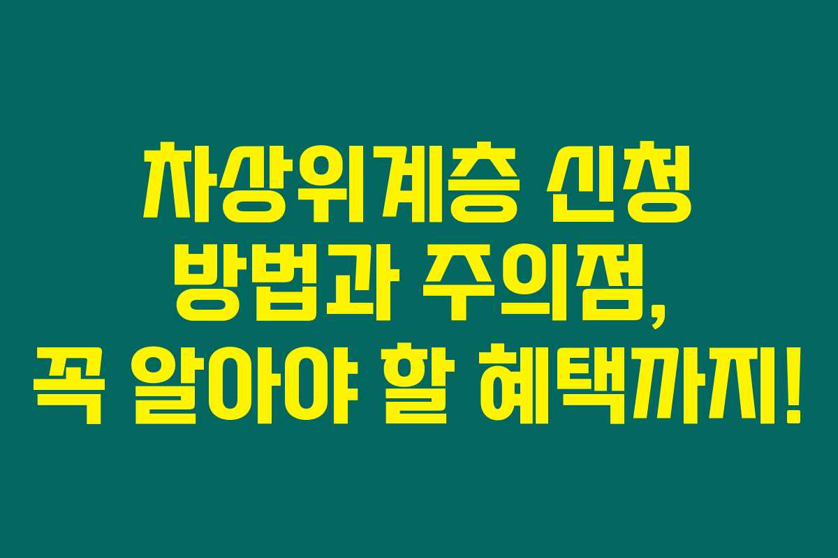 제가 알아본 바로는, 차상위계층은 기초생활수급자 선정에서 탈락했지만, 정부의 다양한 지원과 혜택을 받을 수 있는 매우 중요한 제도입니다. 이 글에서는 차상위계층의 조건, 신청 방법, 그리고 신청할 때 주의해야 할 점에 대해 자세히 알아보겠습니다. 아래를 읽어보시면 차상위계층이 어떻게 여러분의 삶을 더 나은 방향으로 변화시킬 수 있는지에 대한 이론과 실제를 명확히 이해할 수 있을 거예요.