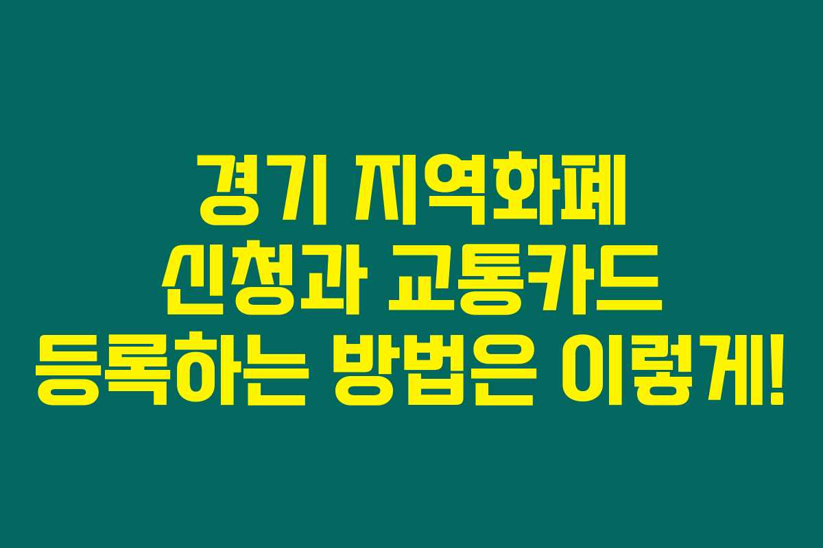 경기 지역화폐 카드를 교통카드로 사용하고 싶으시다면, 카드 발급 시 교통카드 겸용으로 신청하는 것이 좋습니다. 다른 방법으로는, 이미 발급된 경기 지역화폐 카드에 교통카드 기능을 추가 등록하는 것도 가능하니 참고하세요.