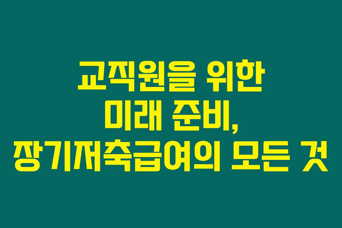제가 리서치해본 바로는, 장기저축급여는 교직원을 위한 안정적인 재정계획 수단으로, 미래에 대한 불안감을 해소해 줄 수 있는 매우 유용한 제도입니다. 여러 혜택과 함께 정기적으로 저축해 나가며 안정된 미래를 마련할 수 있는 기회를 제공합니다. 아래를 읽어보시면 장기저축급여의 장점과 가입 방법, 그리고 관련된 혜택들에 대해 자세히 알아볼 수 있습니다.