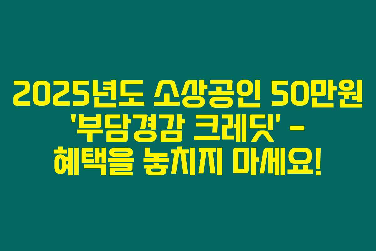 2025년도 소상공인 50만원 ‘부담경감 크레딧’ – 혜택을 놓치지 마세요!