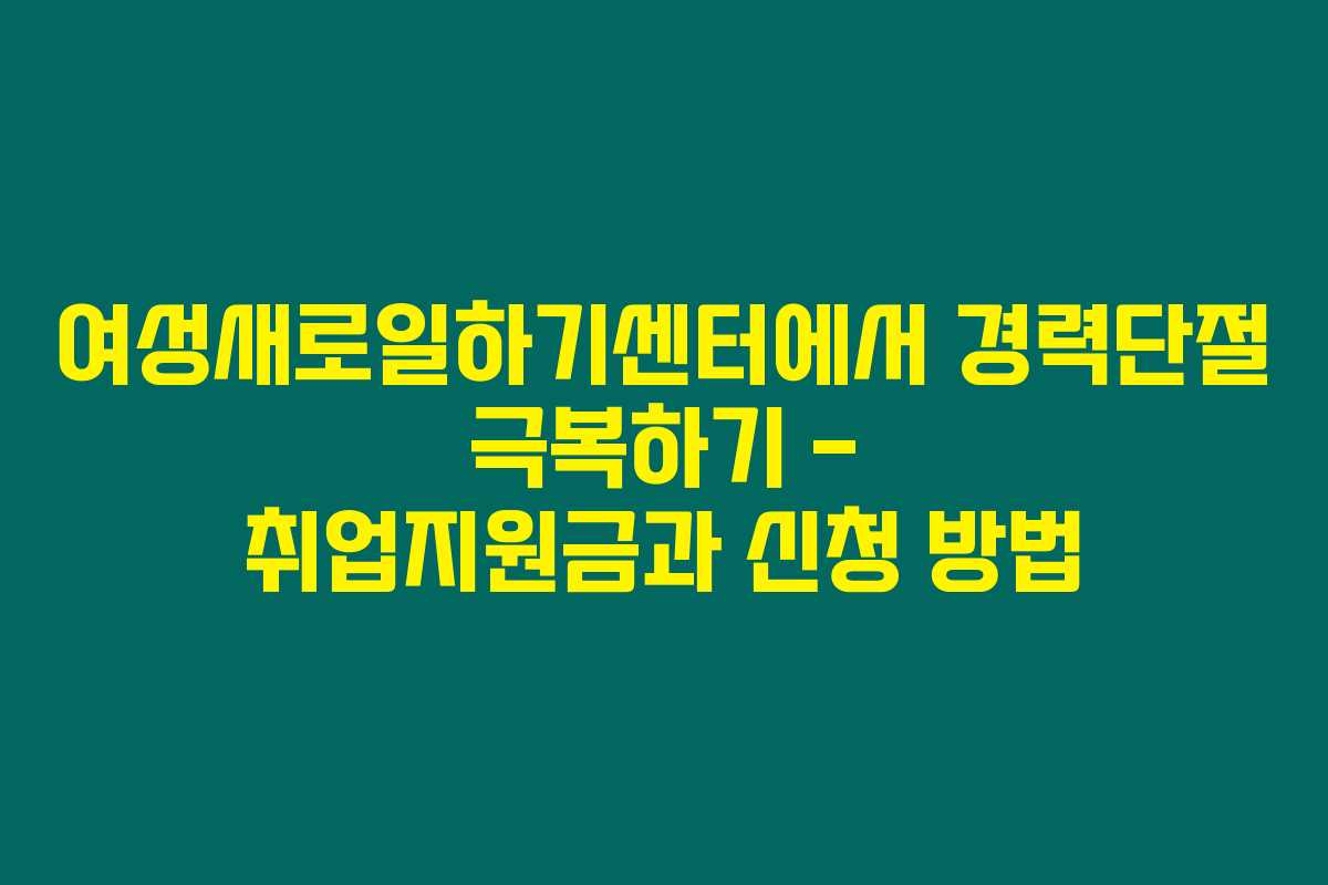 제가 알아본 바로는 여성새로일하기센터는 경력단절 여성들을 위한 다양한 취업 지원 프로그램을 제공하여, 안정적인 취업과 고용 유지를 돕고 있습니다. 특히, 인턴 지원금과 맞춤형 직업교육훈련을 통해 많은 여성들이 새로운 경력의 기회를 찾고 있습니다. 아래를 읽어보시면 이 센터의 지원 제도와 신청 방법에 대해 자세히 알아보실 수 있을 거예요.