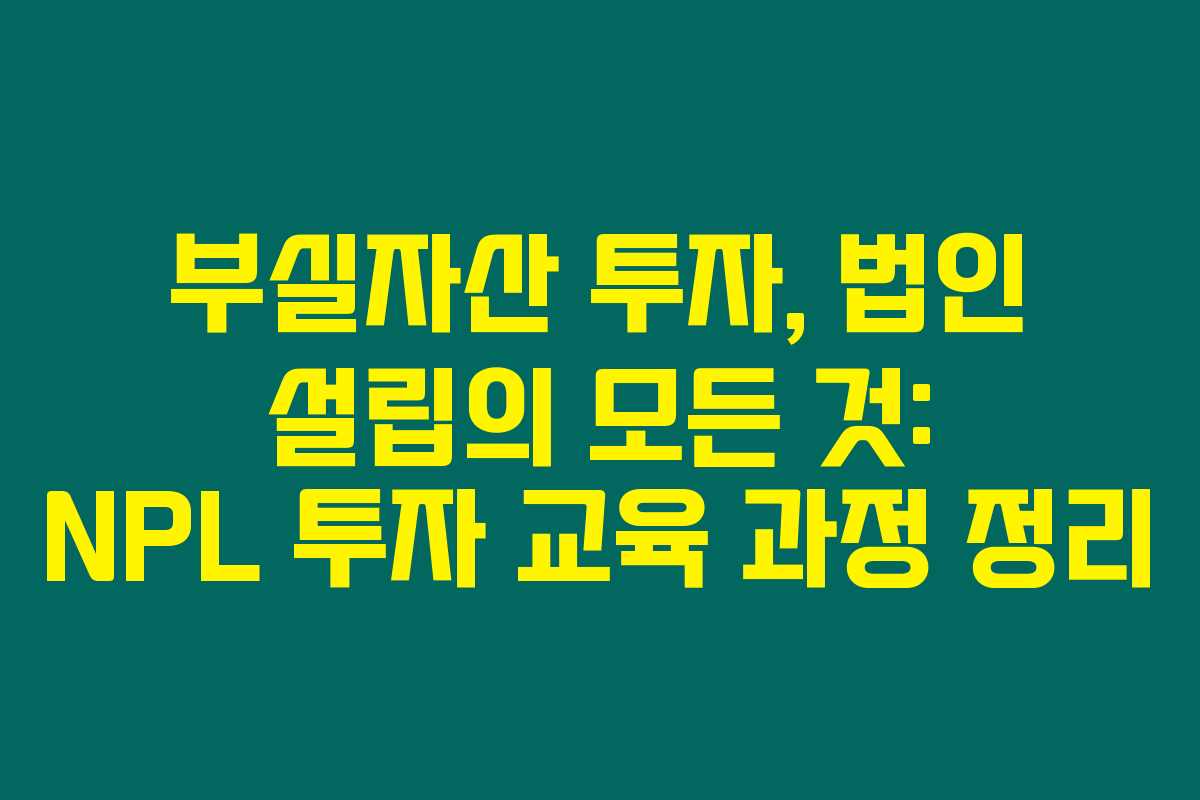 부실자산 투자와 관련된 법인 설립 교육 과정에 대한 소중한 정보를 제공해드립니다. 제가 직접 체험해본 결과로는 이 과정은 부실자산 투자에 대한 이해도를 높이는 데 큰 도움이 되더라고요. 특히 NPL(부실자산) 투자를 고려하는 분들에게 필수적인 내용들이 포함되어 있어서 참고하시길 바랍니다.