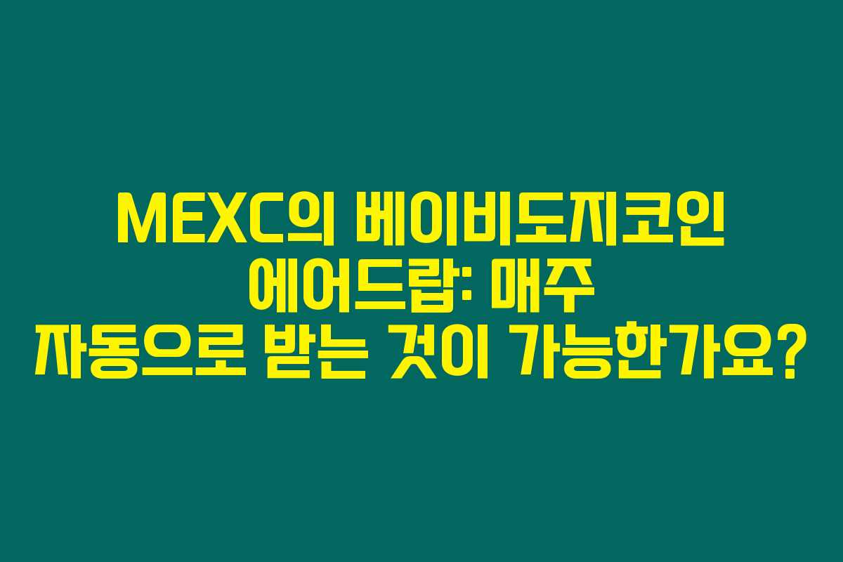 제가 알아본 바로는, 많은 암호화폐 투자자들이 MEXC 거래소에서 베이비도지코인을 보유함으로써 매주 에어드랍을 자동으로 받을 수 있다는 기대감을 가지고 있는 것 같습니다. 그러나 일부 사용자들이 에어드랍을 받지 못하는 문제가 발생하기도 해서, 정확한 정보가 필요하죠. 아래를 읽어보시면 MEXC에서 베이비도지코인 에어드랍의 작동 원리, 필수 조건, 에어드랍 미지급 이유 등에 대해 알아보실 수 있을 거예요.