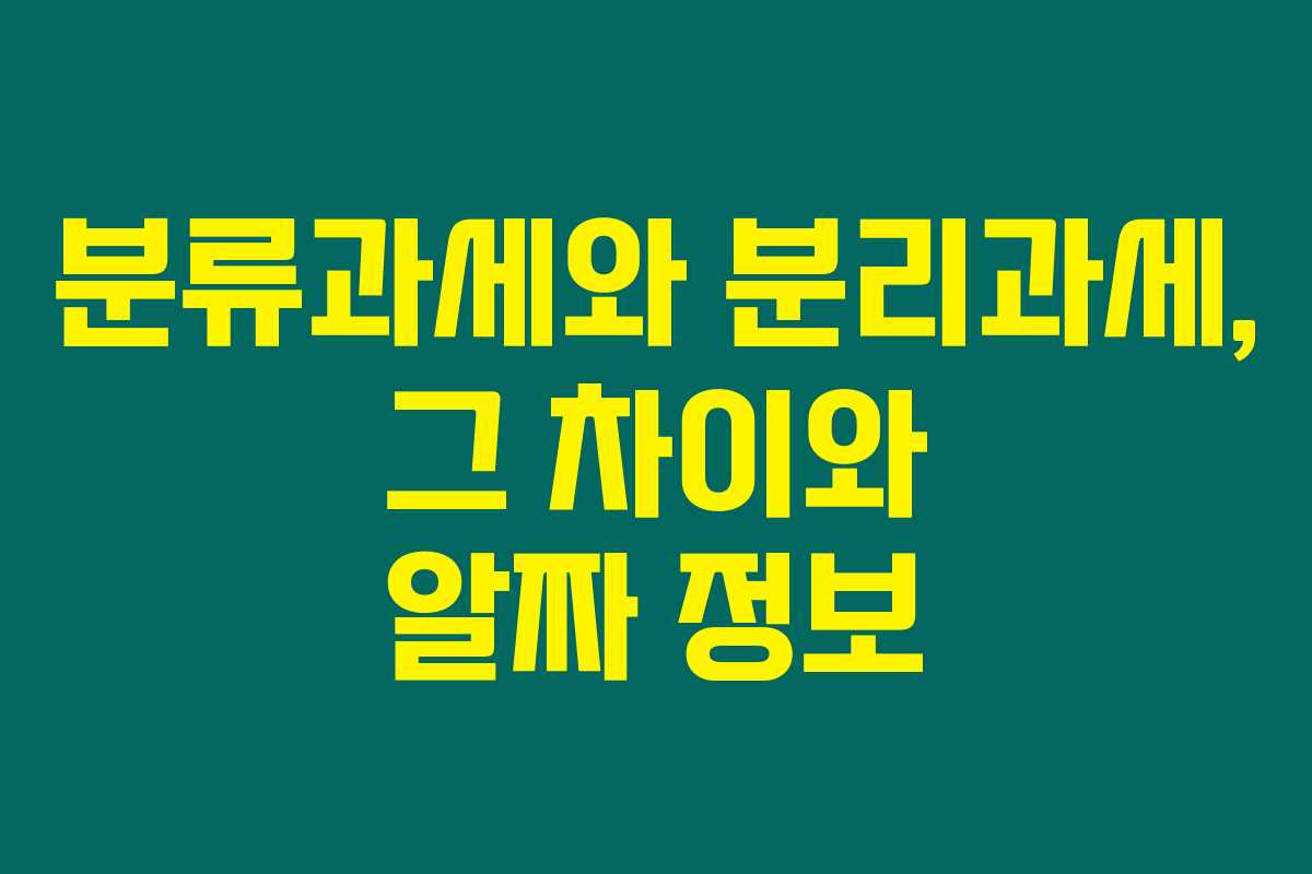 분류과세와 분리과세, 그 차이와 알짜 정보