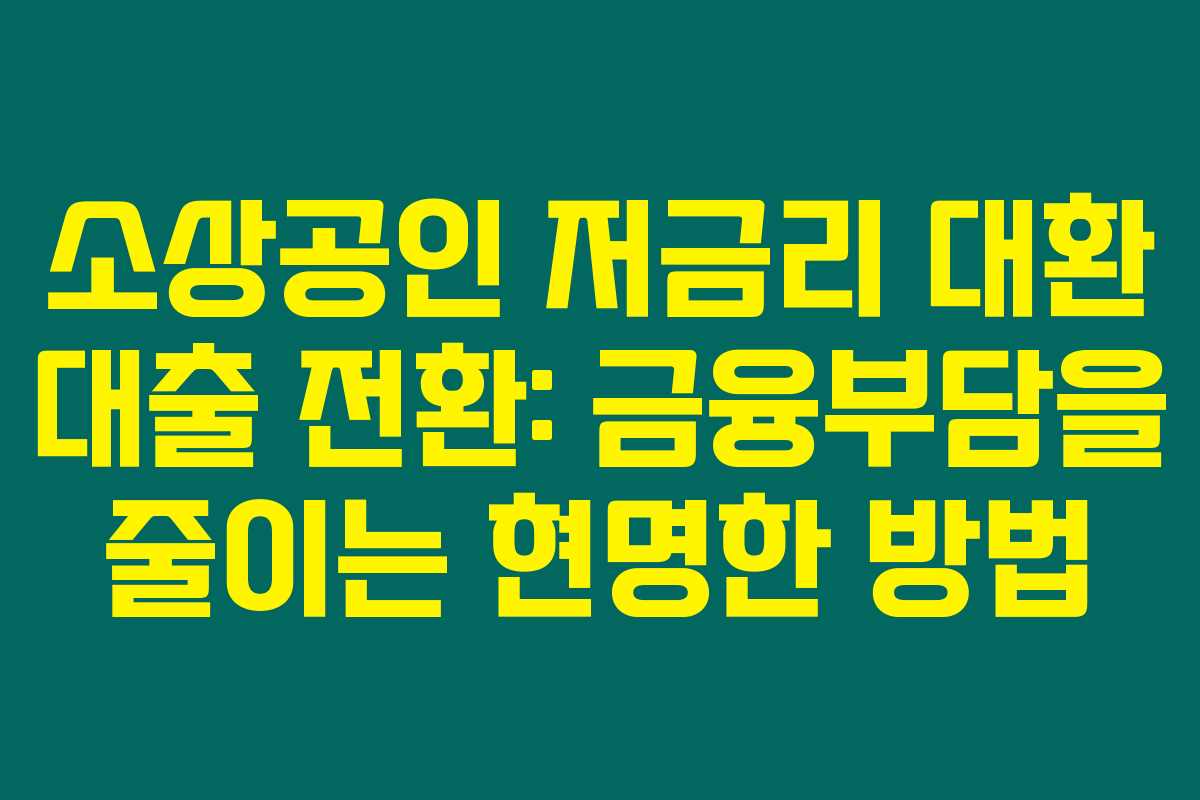 제가 직접 경험해본 결과로는, 최근 소상공인과 자영업자들에게 큰 도움이 되는 저금리 대환 대출 전환이 시행되고 있다는 사실이에요. 이 프로그램은 코로나19로 경제적 어려움을 겪고 있는 소상공인들에게 고금리 대출을 저금리로 바꿀 수 있는 기회를 제공합니다. 아래를 읽어보시면 대환 대출 전환의 대상, 신청 방법, 필요한 서류, 그리고 관련 콜센터 정보까지 자세히 알아보실 수 있을 거예요.
