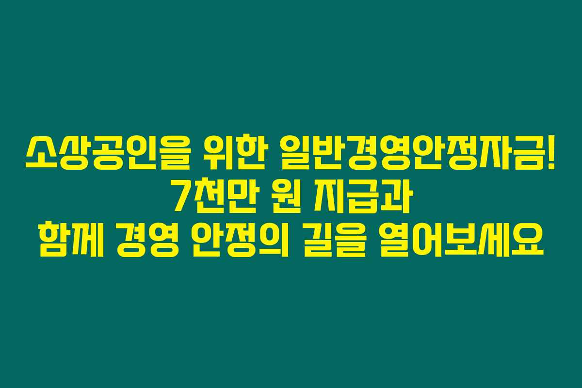제가 직접 체크해본 바로는 소상공인을 위한 일반경영안정자금은 사업 운영과 성장을 위한 필수적인 자금 지원 프로그램이에요. 이 자금은 최대 7천만 원까지 지원을 받을 수 있어 사업자에게 큰 도움이 되는 것 같아요. 특히 소상공인들은 매출 불황 속에서도 지속 가능한 성장을 위해 이와 같은 지원을 적극 활용해야 해요. 아래를 읽어보시면 이 자금의 자세한 내용과 신청 방법을 알 수 있어요.