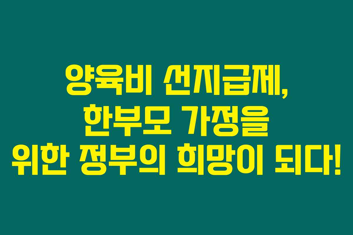 제가 알아본 바로는, 새로운 양육비 선지급제가 시행되면서 한부모 가정에 큰 도움이 될 것으로 전망됩니다. 이는 속히 만나길 바라는 제도이며, 미지급 양육비로 인한 경제적 부담을 해소하는 데 중요한 역할을 할 것이라는 생각이 들어요. 아래를 읽어보시면, 이 제도가 어떻게 운영될 예정인지에 대한 자세한 내용과 함께 향후 효과를 설명드릴게요.