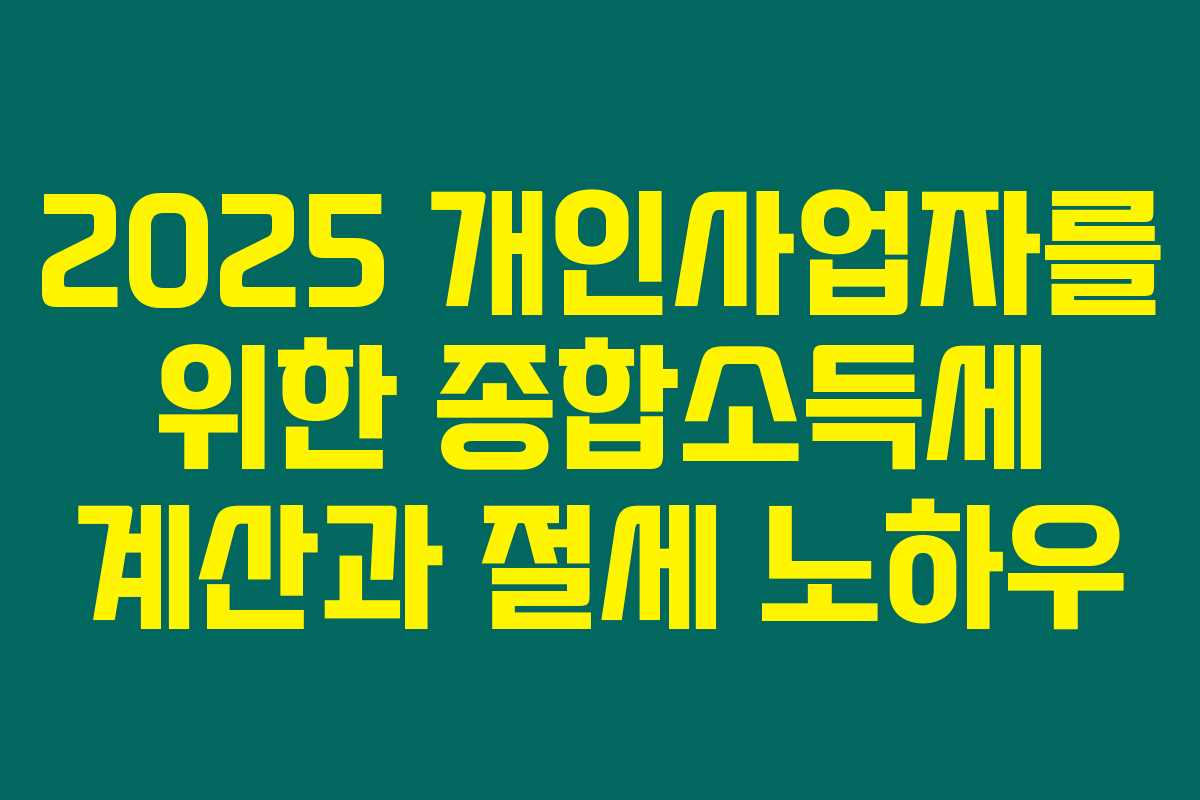 2025 개인사업자를 위한 종합소득세 계산과 절세 노하우