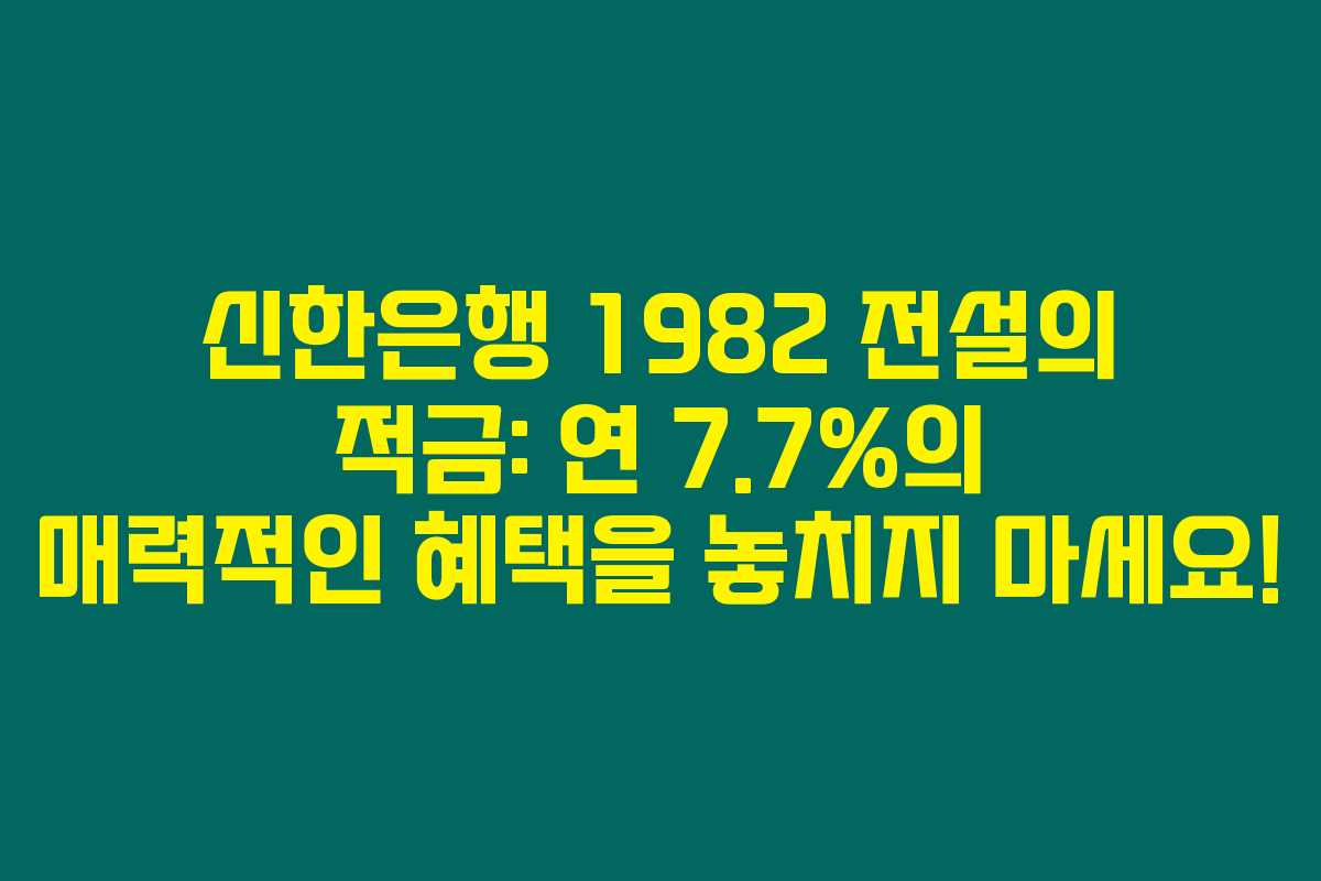 이와 같이 신한은행의 1982 전설의 적금은 기본금리로도 연 3.0%를 제공하며, 최대 연 7.7%의 금리 혜택을 받을 수 있어요. 이율이 꽤 높은 편이니, 요즘처럼 고금리가 귀한 시기에는 놓칠 수 없는 상품이지요.