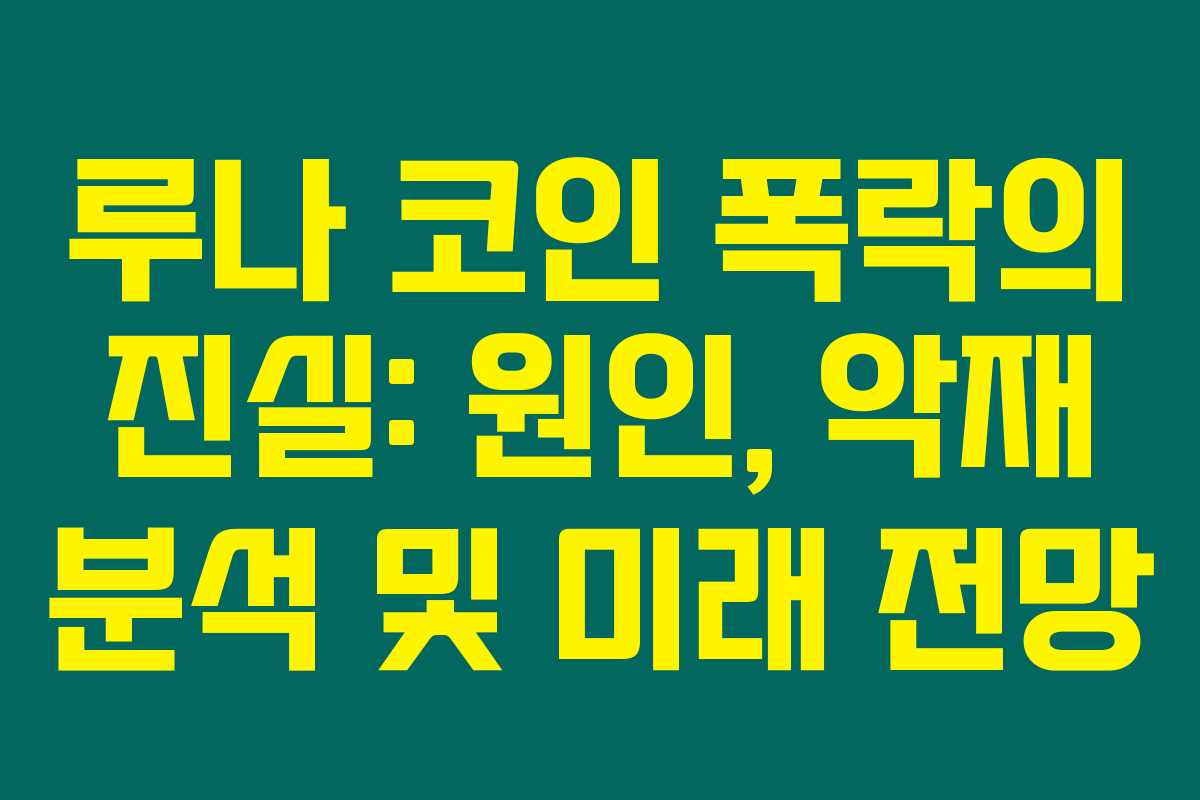 제가 직접 체크해본 바로는 루나(Luna) 코인의 폭락 원인은 복합적이며, 투자자들에게 큰 충격을 안겼습니다. 많은 이들이 왜 이렇게 큰 폭락이 발생했는지 궁금해하는 만큼, 아래를 읽어보시면 루나 코인의 위험 요소와 향후 전망에 대한 정보를 한눈에 확인하실 수 있을 것입니다.