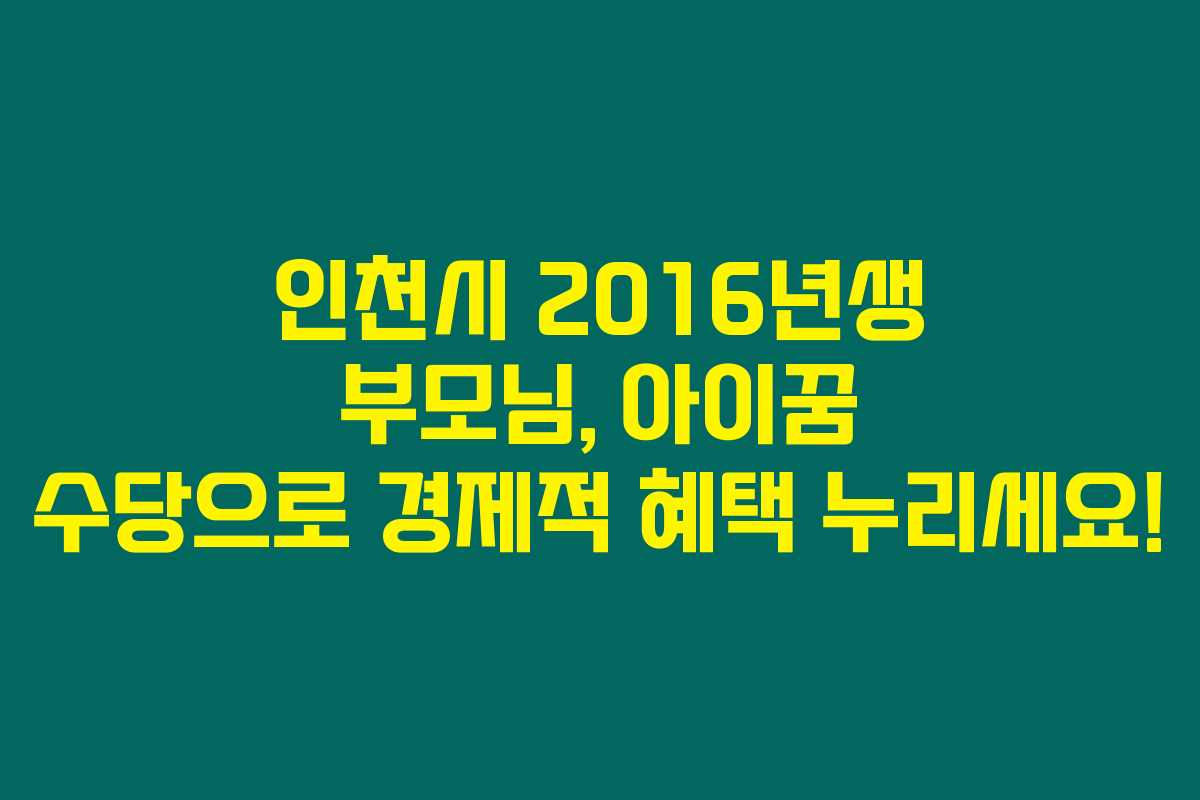 제가 직접 경험해본 결과로는 인천광역시에서 시행하는 아이꿈 수당은 부모님에게 큰 도움이 되는 경제적 지원이었어요. 특히 2016년생 아동을 둔 가정은 이 지원금을 통해 경제적 부담을 조금이나마 덜 수 있습니다. 아래를 읽어보시면, 제 나름의 팁 및 신청 방법에 관한 유용한 정보를 알게 되실 거예요.