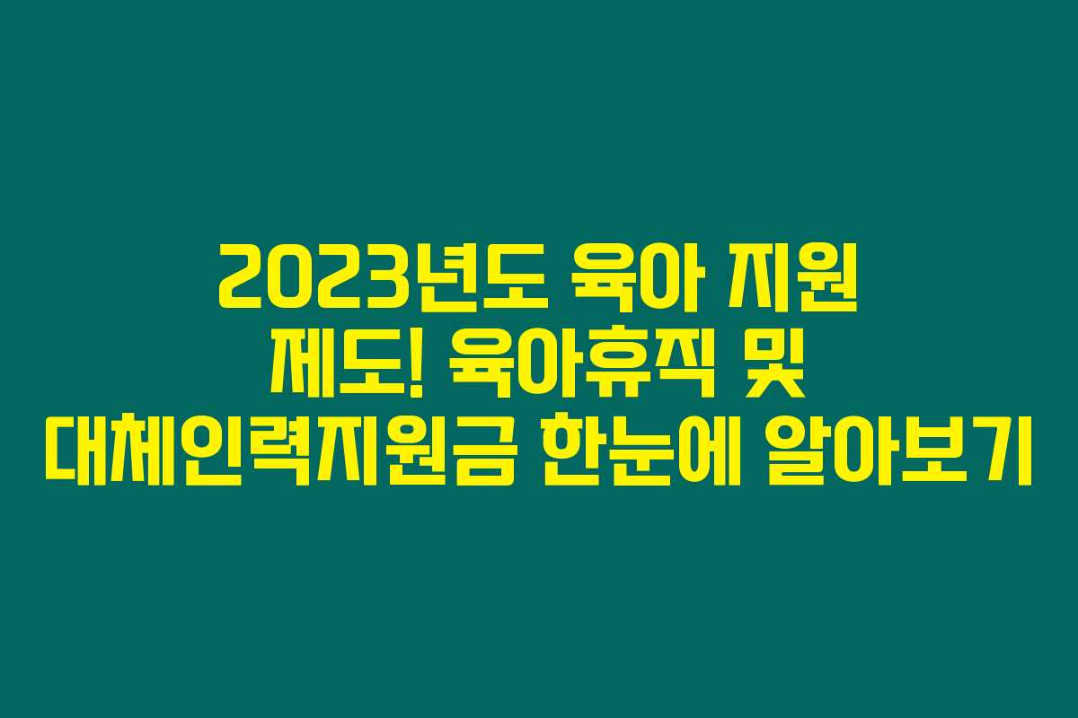 제가 직접 경험해본 바로는, 2023년도부터 새롭게 시행된 육아휴직지원금, 육아기 근로시간 단축, 그리고 대체인력지원금 제도는 많은 사업주와 근로자에게 실질적 도움이 되는 정책입니다. 아래를 읽어보시면 이러한 정책들이 어떤 내용을 포함하고 있는지, 어떻게 신청할 수 있는지에 대해 자세히 알아보실 수 있습니다.