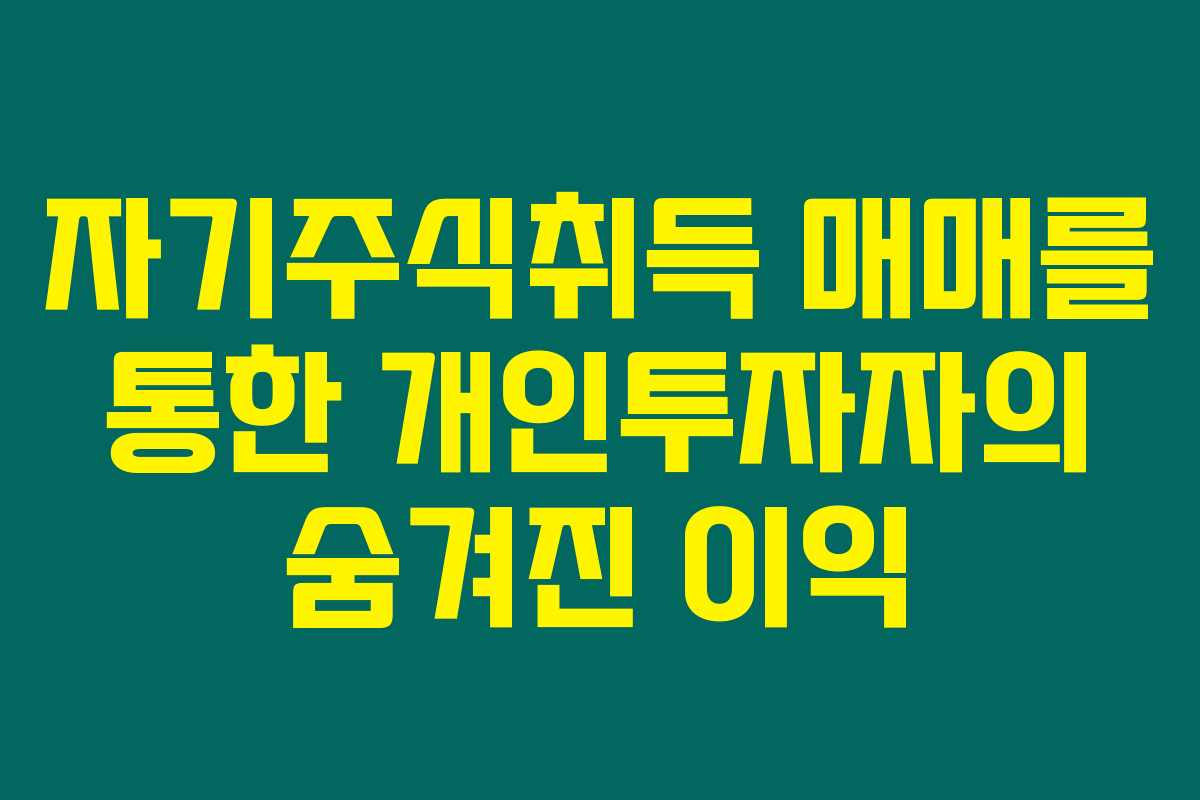 자기주식취득 매매를 통한 개인투자자의 숨겨진 이익