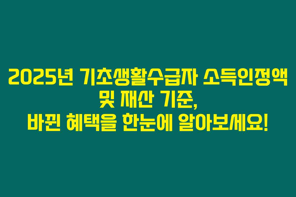 저는 직접 이 정보를 확인해본 결과, 2025년부터 기초생활수급자에 대한 소득인정액과 재산 기준이 변경되어 더 많은 분들이 지원을 받을 수 있게 되었다는 것을 알게 되었어요. 소득과 재산의 정확한 기준을 이해하는 것이 무엇보다 중요하답니다. 이번 포스팅에서는 소득인정액의 정의, 소득평가와 재산 기준, 그리고 이에 따른 급여별 청구 요건까지 명확히 정리해 드릴게요.