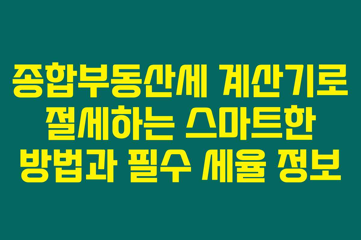 제가 직접 체크해본 바로는 종합부동산세(종부세)는 매년 많은 국민들에게 큰 부담이 되는 세금입니다. 특히 6월의 과세 기한을 앞두고 이를 준비하는 과정은 스트레스를 줄 수 있는 부분이죠. 이번 포스팅에서는 종합부동산세 계산기를 활용하는 방법과 절세 꿀팁, 세율 및 기준일에 대한 유용한 정보를 아주 자세히 풀어보겠습니다. 아래를 읽어보시면 효율적으로 세금 부담을 줄이는 방법과 공인중개사 시험 준비에 도움이 될 내용을 찾으실 수 있을 거예요.
