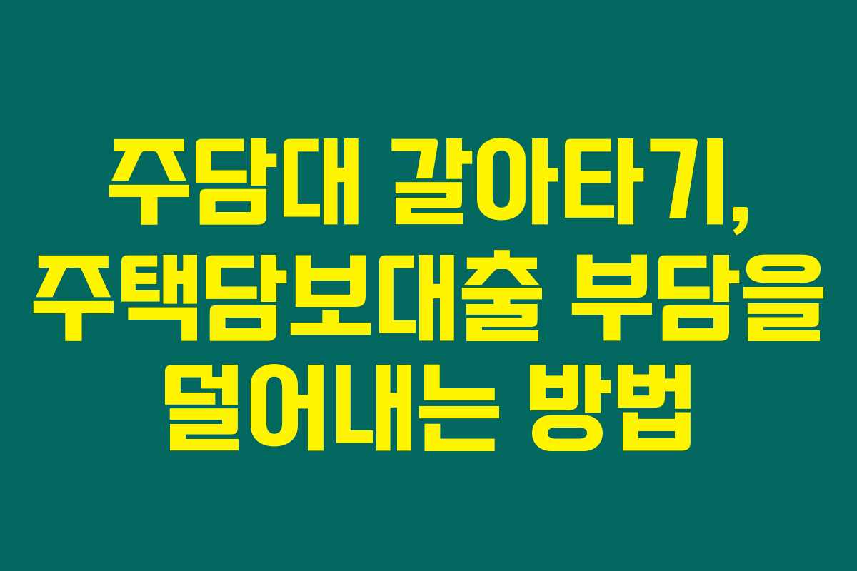 제가 알아본 바로는, 현재 높은 금리로 인해 주택담보대출(주담대) 이자에 고민이 많으신 분들이 많아요. 최근 금융권에서는 고객들을 위한 주담대 갈아타기 서비스가 활성화되고 있는데요, 이를 통해 저금리로의 대환이 가능하다는 점이 많은 사람들에게 희망이 되고 있답니다. 아래를 읽어보시면 주담대 갈아타기의 방법과 조건, 그리고 혜택에 대해 자세히 알아보실 수 있을 거예요.
