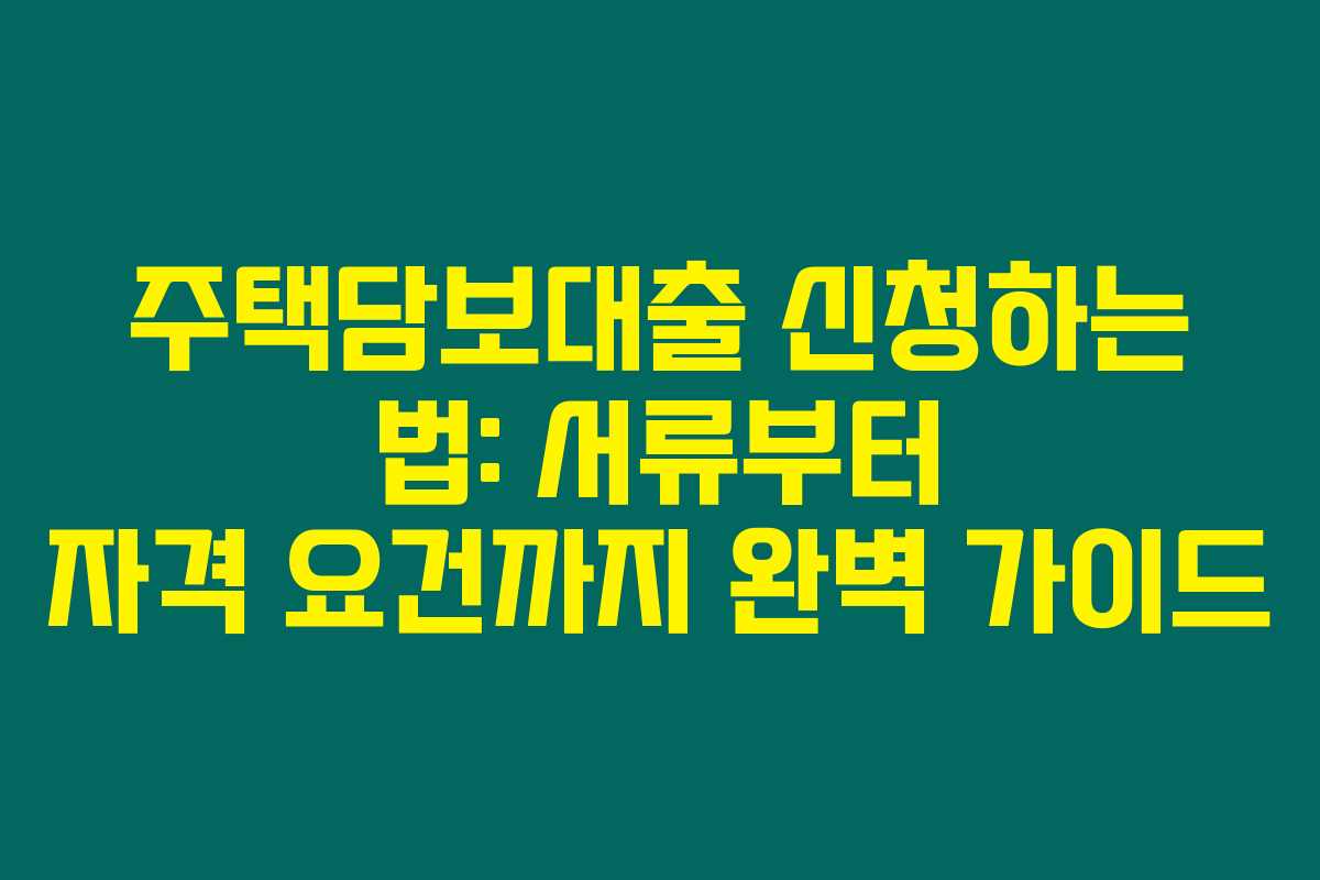 주택담보대출은 내 집 마련의 꿈을 이루는 데에 큰 도움이 되는 금융상품입니다. 제가 직접 경험해본 결과로는, 주택담보대출의 신청 과정이 복잡하다는 생각을 하게 되었고, 필요한 서류나 자격 요건, 신청 전에 꼭 확인해야 할 사항들을 정리해보았습니다. 아래를 읽어보시면 주택담보대출 신청에 대한 모든 정보를 알게 될 것입니다.