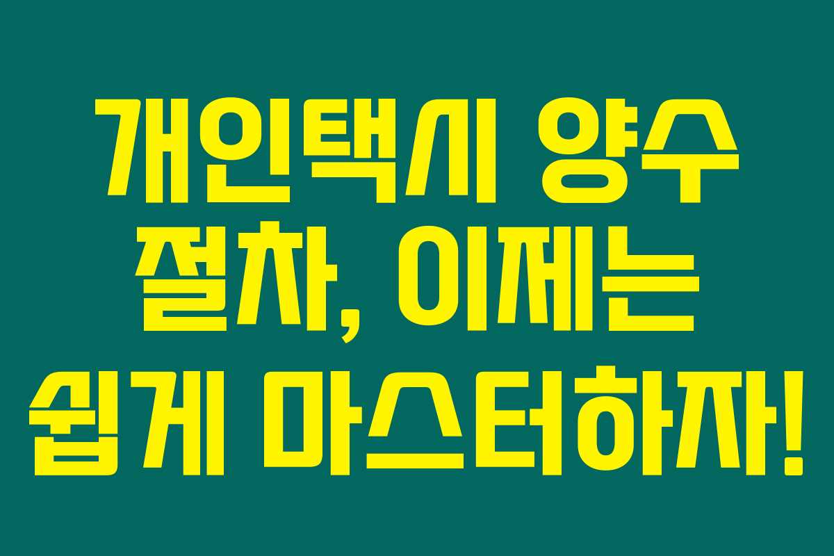 개인택시 양수 절차, 이제는 쉽게 마스터하자!