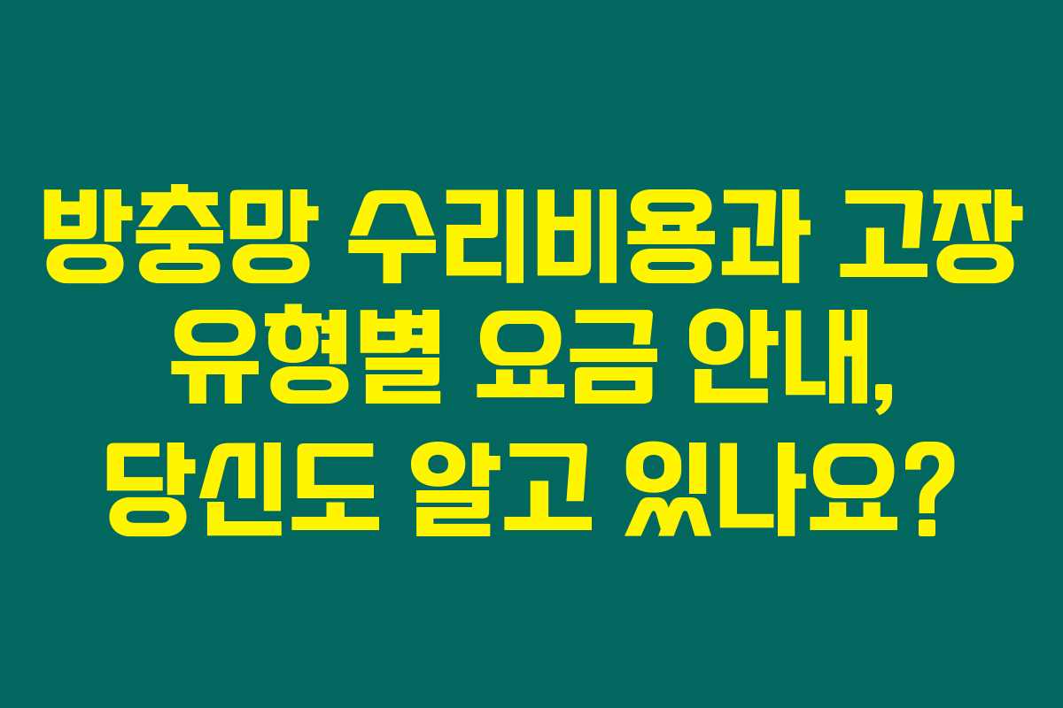 방충망 수리비용은 고장 유형에 따라 다르기 때문에, 상황에 맞는 예산을 세우는 것이 중요해요. 제가 직접 체크해본 바로는 아래의 수리비용을 평균적으로 참고하실 수 있습니다.