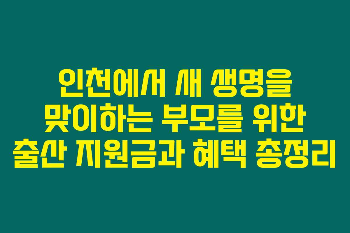 위 생명을 맞이하는 특별한 순간, 인천에서는 여러가지 출산 지원금과 혜택을 제공하여 부모님들의 부담을 덜어주고 있습니다. 제가 직접 알아본 바로는 인천 출산지원금, 첫만남이용권, 부모급여 등 다양한 출산 혜택이 마련되어 있습니다. 아래를 읽어보시면 각 혜택의 내용과 신청 방법을 자세히 알 수 있을 거예요.
