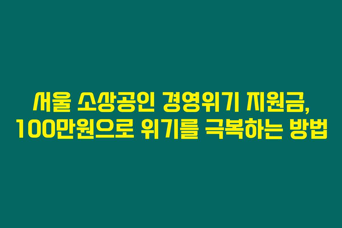 서울 소상공인 경영위기 지원금, 100만원으로 위기를 극복하는 방법