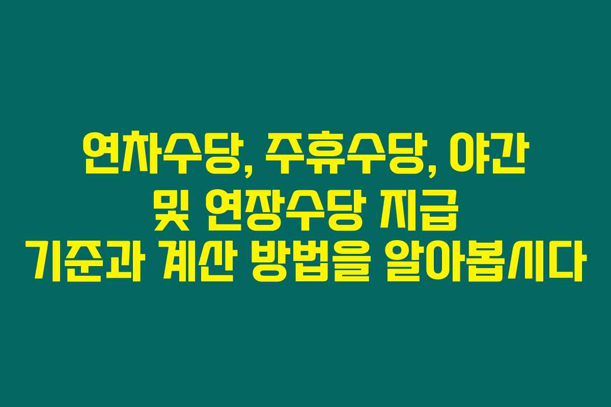 아래를 읽어보시면 연차수당, 주휴수당, 야간 및 연장수당에 대해 좀 더 자세히 알 수 있어요. 각 수당의 지급 조건과 계산 방법을 염두에 두고, 언제든지 이를 요구할 권리가 있음을 기억해주세요. 주어진 정보를 잘 활용하여 자신의 권리를 누리시길 바랍니다.