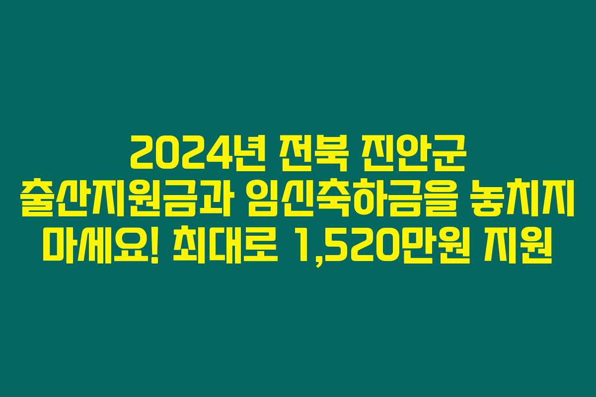 제가 판단하기로는, 2024년 전북 진안군에서 제공하는 출산지원금과 임신축하금에 대한 정보를 정리해 보았습니다. 이 혜택들은 출산을 앞두고 있거나 이미 자녀를 둔 가정에게 큰 도움이 될 수 있습니다. 자세한 내용을 아래를 읽어보시면 확인할 수 있습니다.