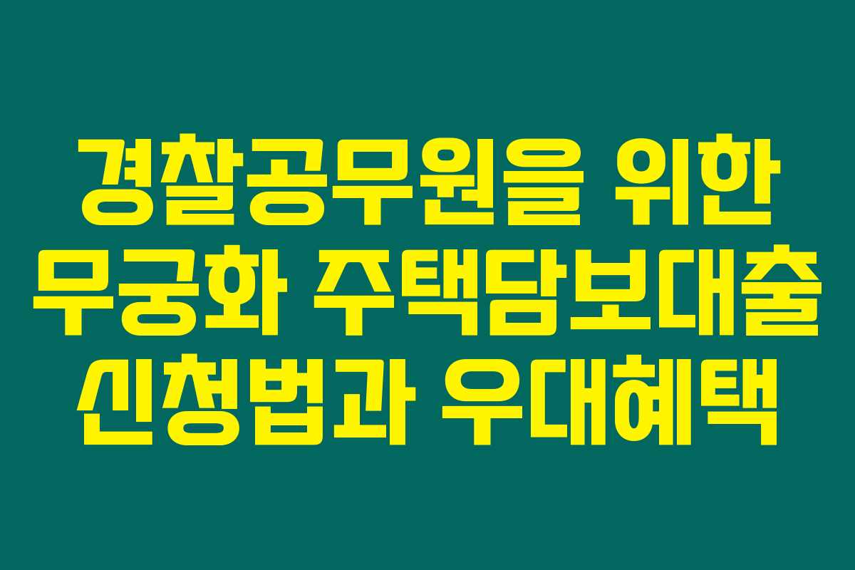제가 직접 경험해본 바로는, 무궁화 주택담보대출은 경찰공무원들에게 특화된 매우 유용한 대출 상품이에요. 저렴한 금리와 다양한 우대 혜택을 통해 주택자금을 보다 쉽게 마련할 수 있는 기회를 제공합니다. 아래를 읽어보시면 이 대출의 신청 방법, 자격 조건, 우대 혜택 등을 자세히 알 수 있을 것입니다.