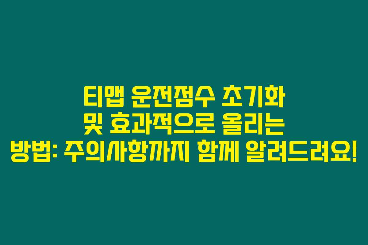 제가 직접 경험해본 결과로는, 많은 운전자가 티맵을 통해 자신의 운전 습관을 분석하고 점수를 받고 있습니다. 그러나 때때로 운전 점수를 초기화하고 싶을 때가 있지요. 아래를 읽어보시면 티맵 운전점수를 초기화하는 구체적인 방법과 함께 점수를 높이는 유용한 팁, 그리고 주의사항을 자세히 안내해드리겠습니다.