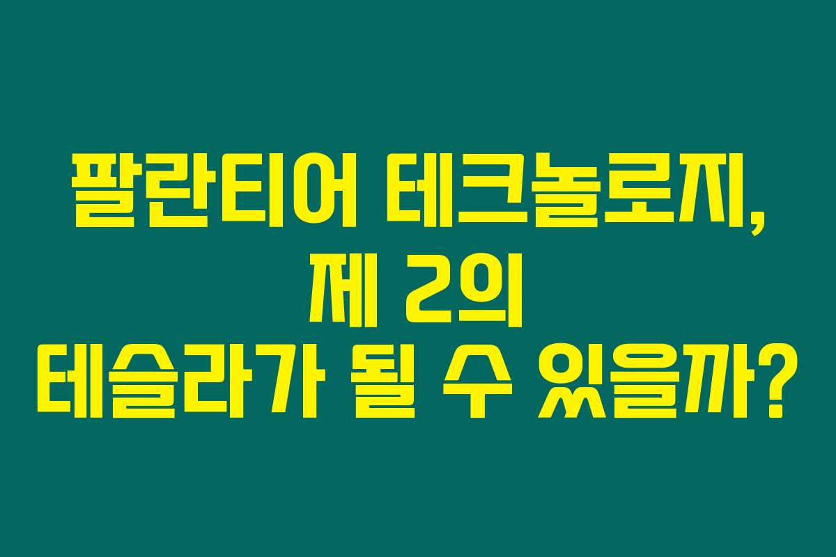 팔란티어 테크놀로지, 제 2의 테슬라는 과연 이뤄질까요? 여러분의 의견은 어떠신가요?