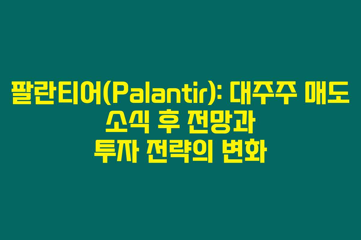 팔란티어(Palantir): 대주주 매도 소식 후 전망과 투자 전략의 변화