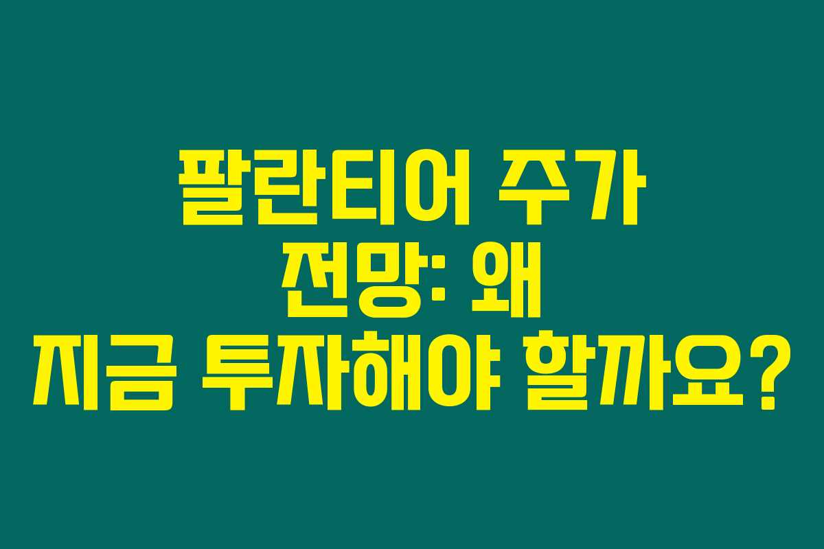 팔란티어 주가 전망: 왜 지금 투자해야 할까요?