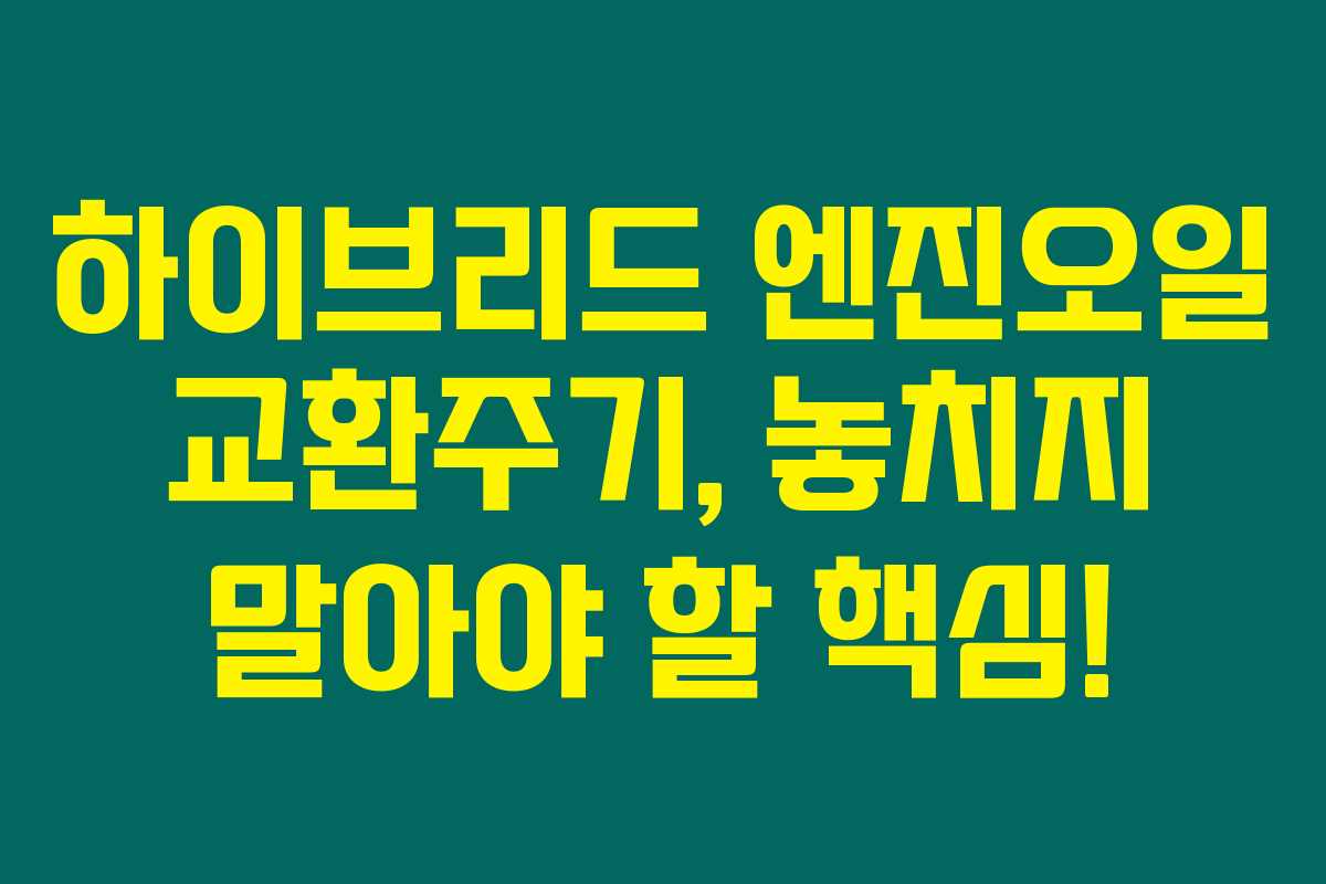 하이브리드 엔진오일 교환주기, 놓치지 말아야 할 핵심!