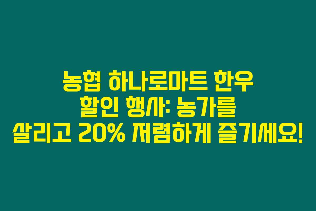 농협 하나로마트 한우 할인 행사: 농가를 살리고 20% 저렴하게 즐기세요!